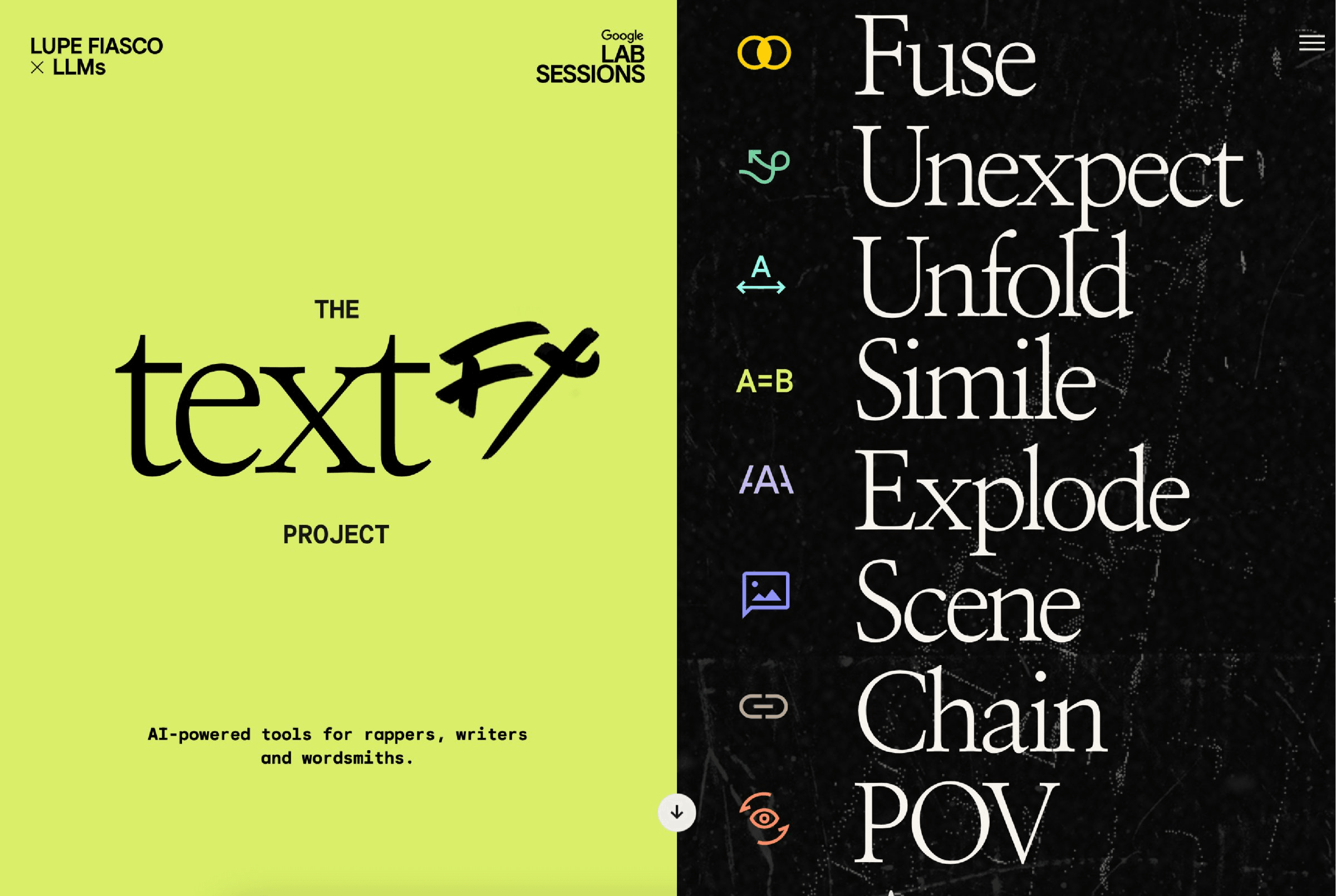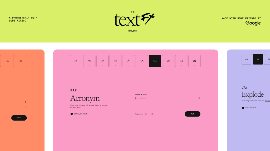 From TextFX being a 3 Webby-award-winning project to the Google Lab website being honored for best visual design aesthetic, we are overjoyed to be part of these initiatives. These accolades serve as a testament to the passion and dedication poured into every endeavor, and we look forward to continuing this journey of innovation and discovery with Google Creative Lab.
