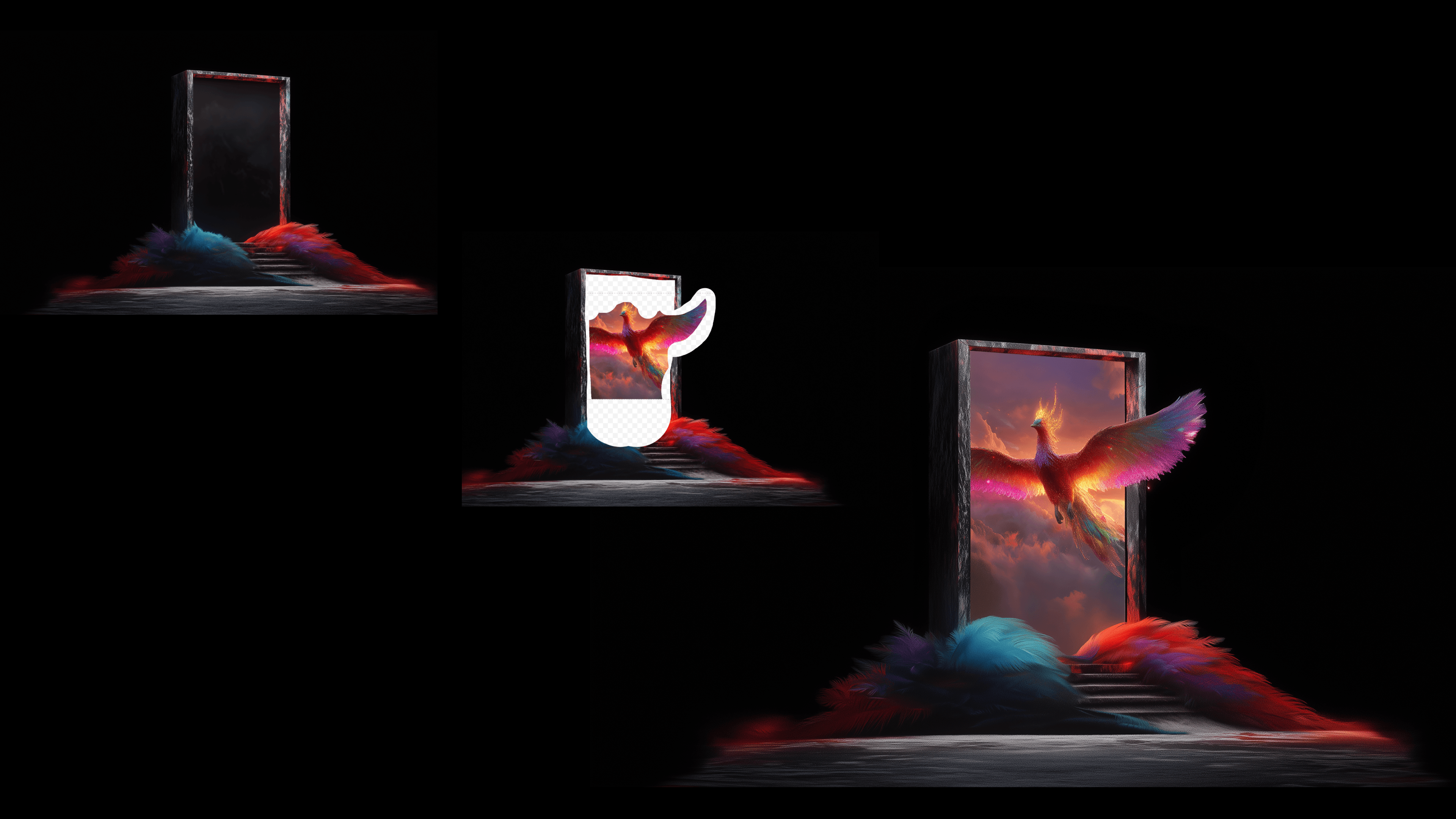 Limit AI control with transparency. We cut out the portal interior in Photoshop and reintroduced it as a transparent PNG, allowing AI to generate only inside the frame.