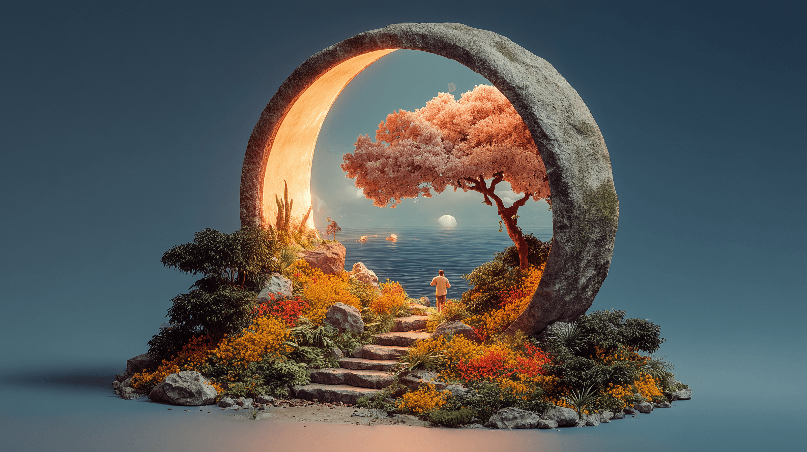 The portal itself—the camera angle, the platform or pathway, the lighting—became fixed. That consistency allowed us to push much harder on what lived inside each doorway without losing cohesion across the system.
