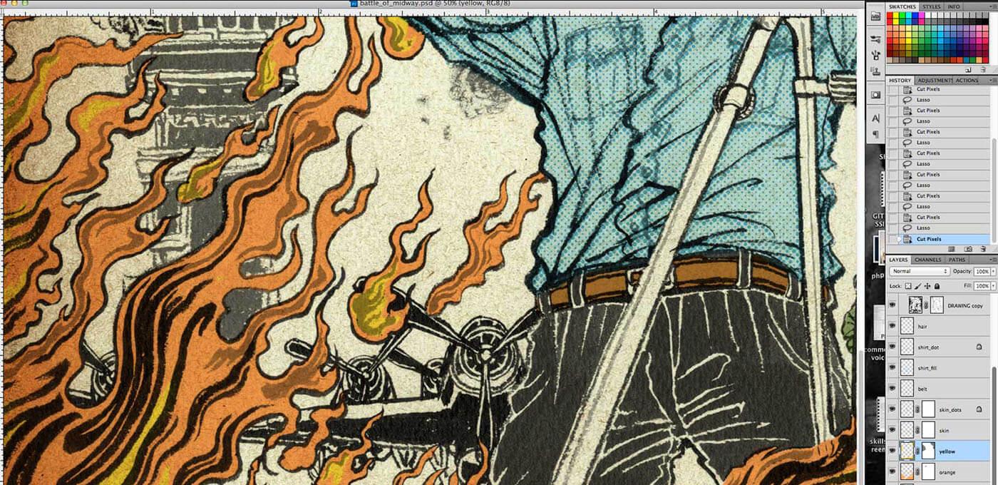 Yuko: I grew up with comics etc. and that was booming then, so it wasn’t that I tried to do what other people were doing but I drew that way and I was looking at people who were starting out and I realized you could get illustration jobs drawing that way. So in that sense I did follow a few other people like Tomer Hanuka who was already working a few years before me, and my class mate Nathan Fox was also doing a similar type of direction. We are in the same group, the 3 of us. They started earlier. Tomer started something very innovative. I rode the wave.
