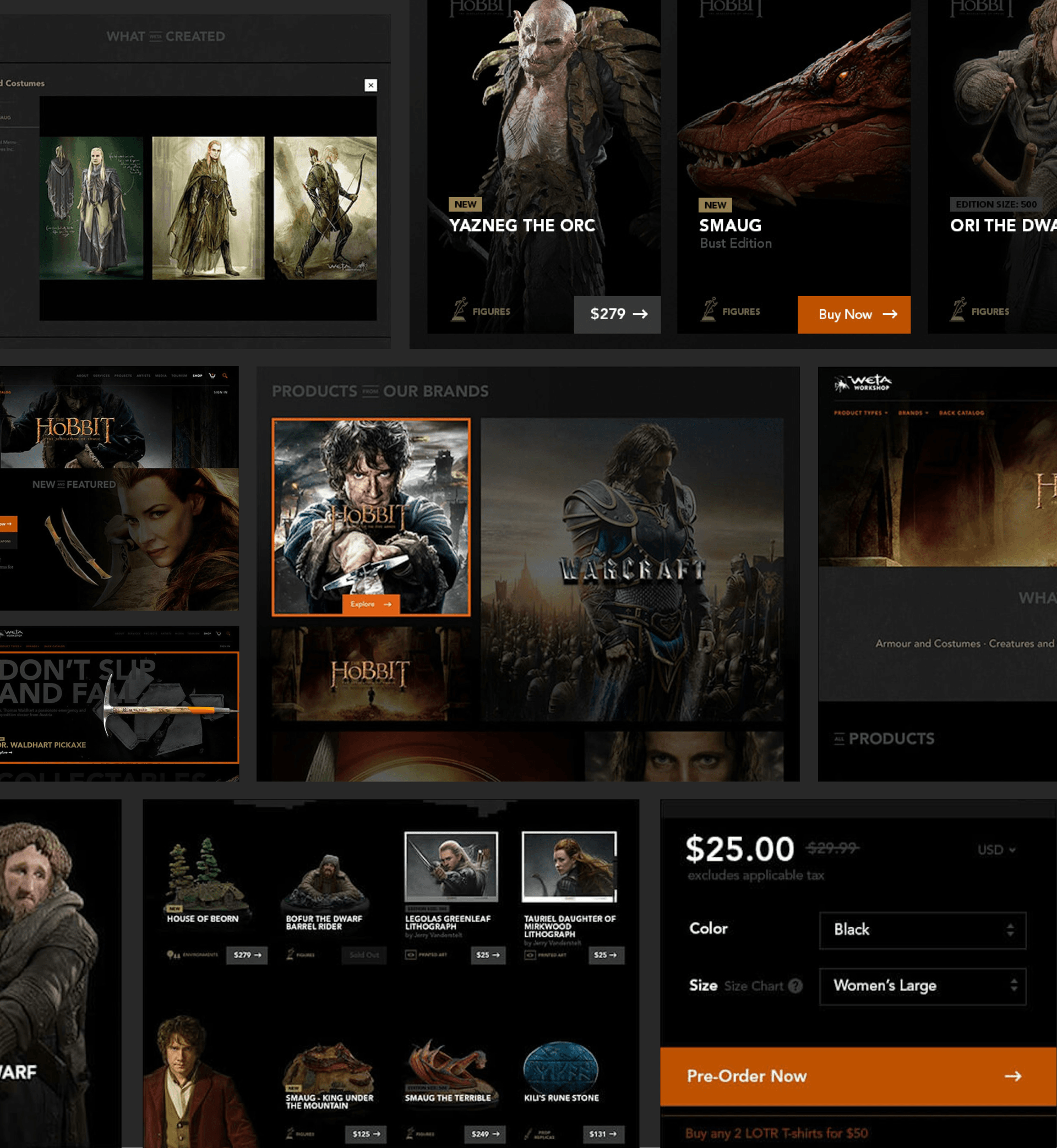 We teamed up with Weta to build an e-commerce site that serves fans everywhere, supporting four warehouses and five currencies so no one misses out. Our mission was to create a storefront that blends seamless shopping with Weta’s signature storytelling and blockbuster magic. Commerce and brand work side by side, capturing the spirit of the films that made Weta legendary.
