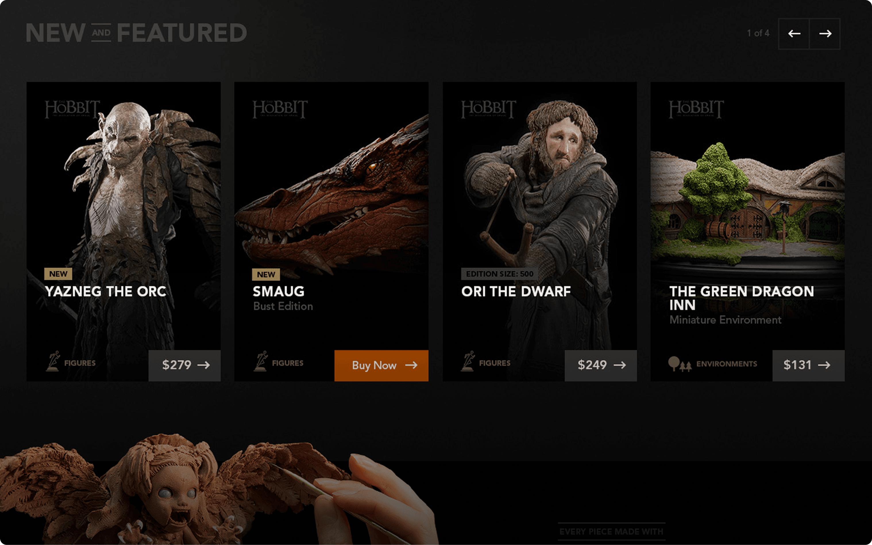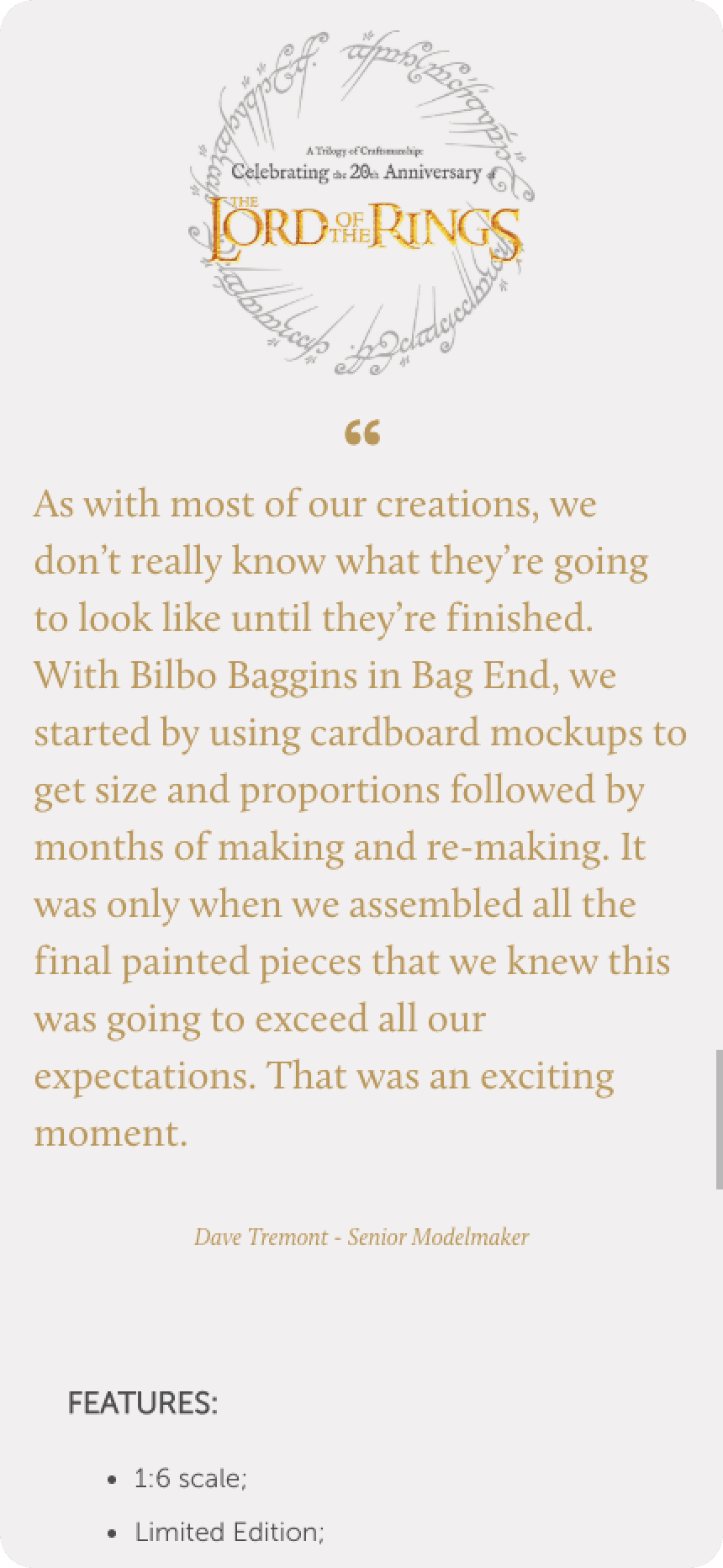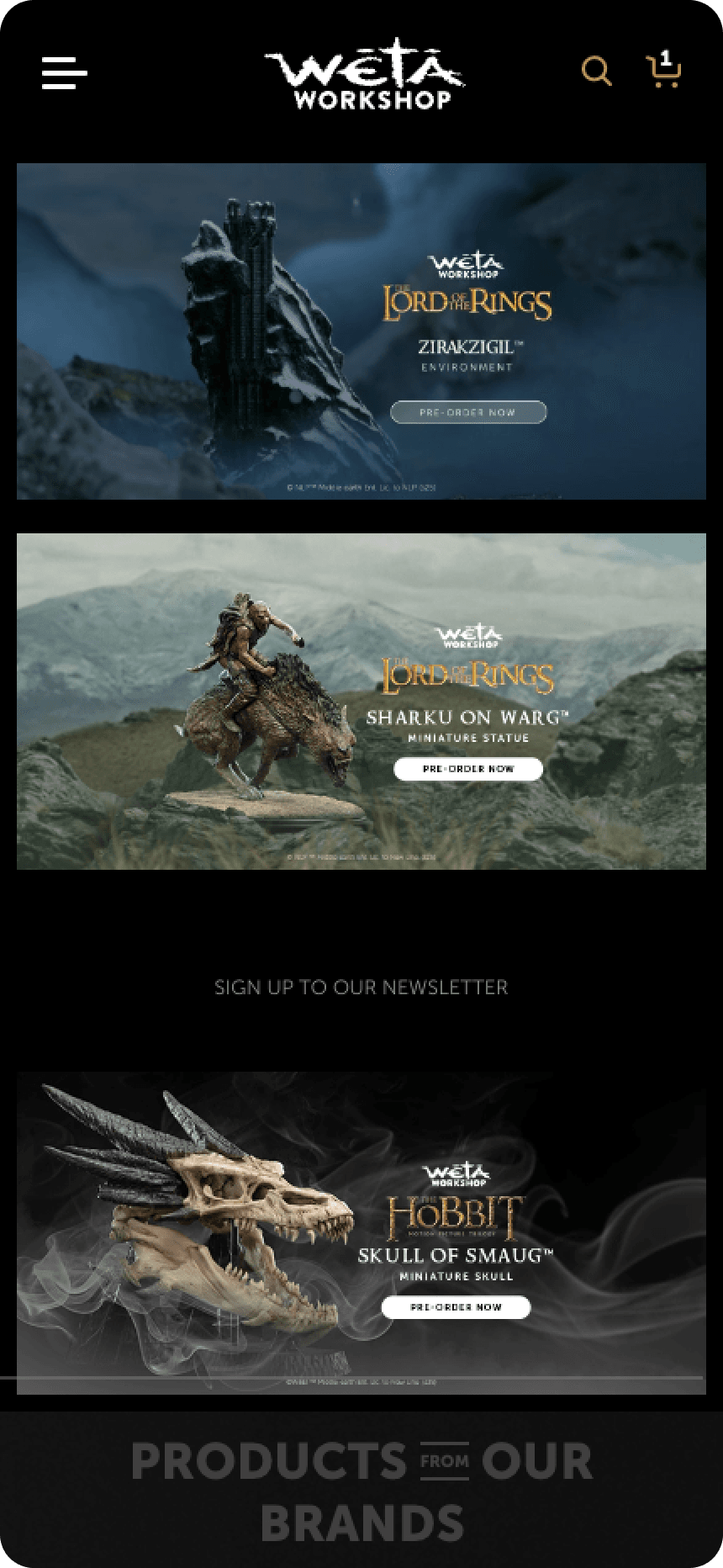 We brought fans closer to the stories behind every collectible, giving each product its full moment to shine. By weaving in the details of Weta’s craftsmanship and the unique brands they bring to life, we made sure the artistry never gets lost in the shuffle. The result? A site full of unexpected touches and genuine moments of delight—so the story always comes through, right alongside the product.