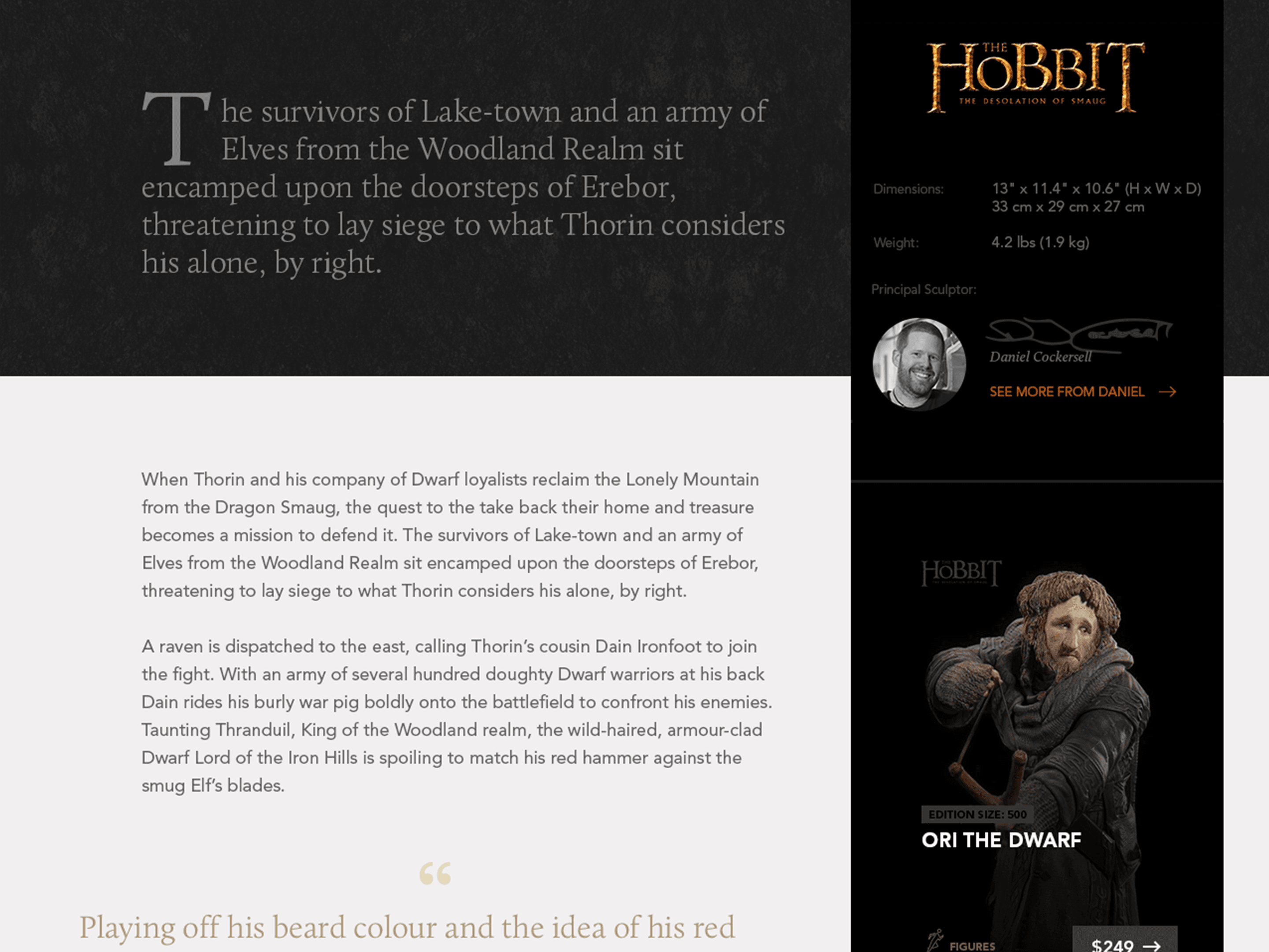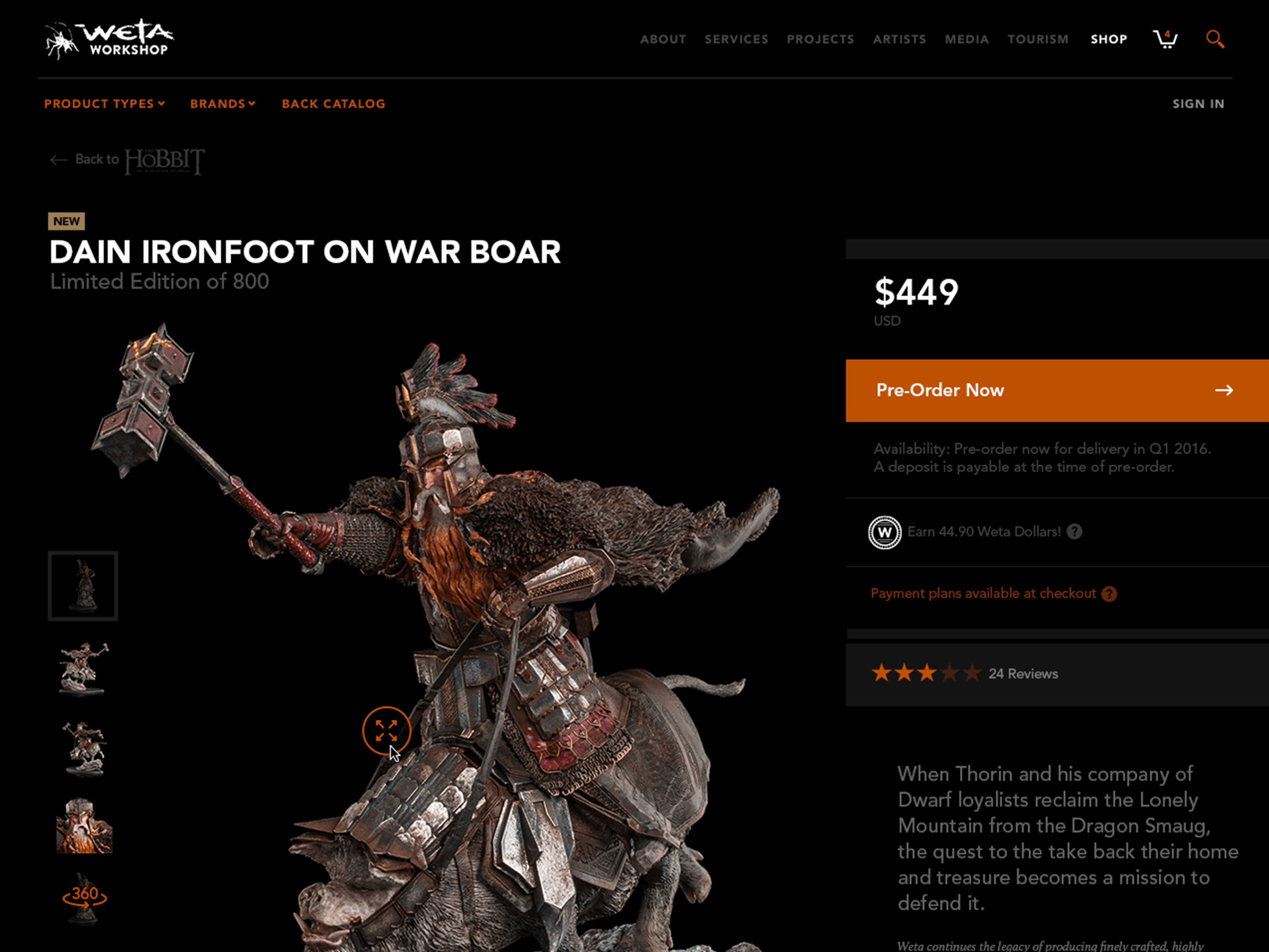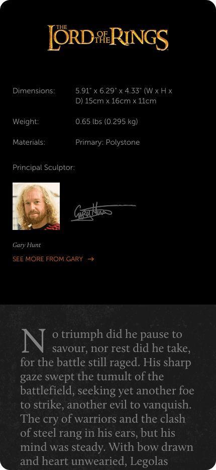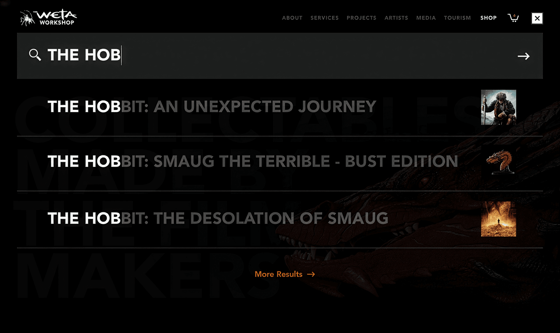 We brought fans closer to the stories behind every collectible, giving each product its full moment to shine. By weaving in the details of Weta’s craftsmanship and the unique brands they bring to life, we made sure the artistry never gets lost in the shuffle. The result? A site full of unexpected touches and genuine moments of delight—so the story always comes through, right alongside the product.