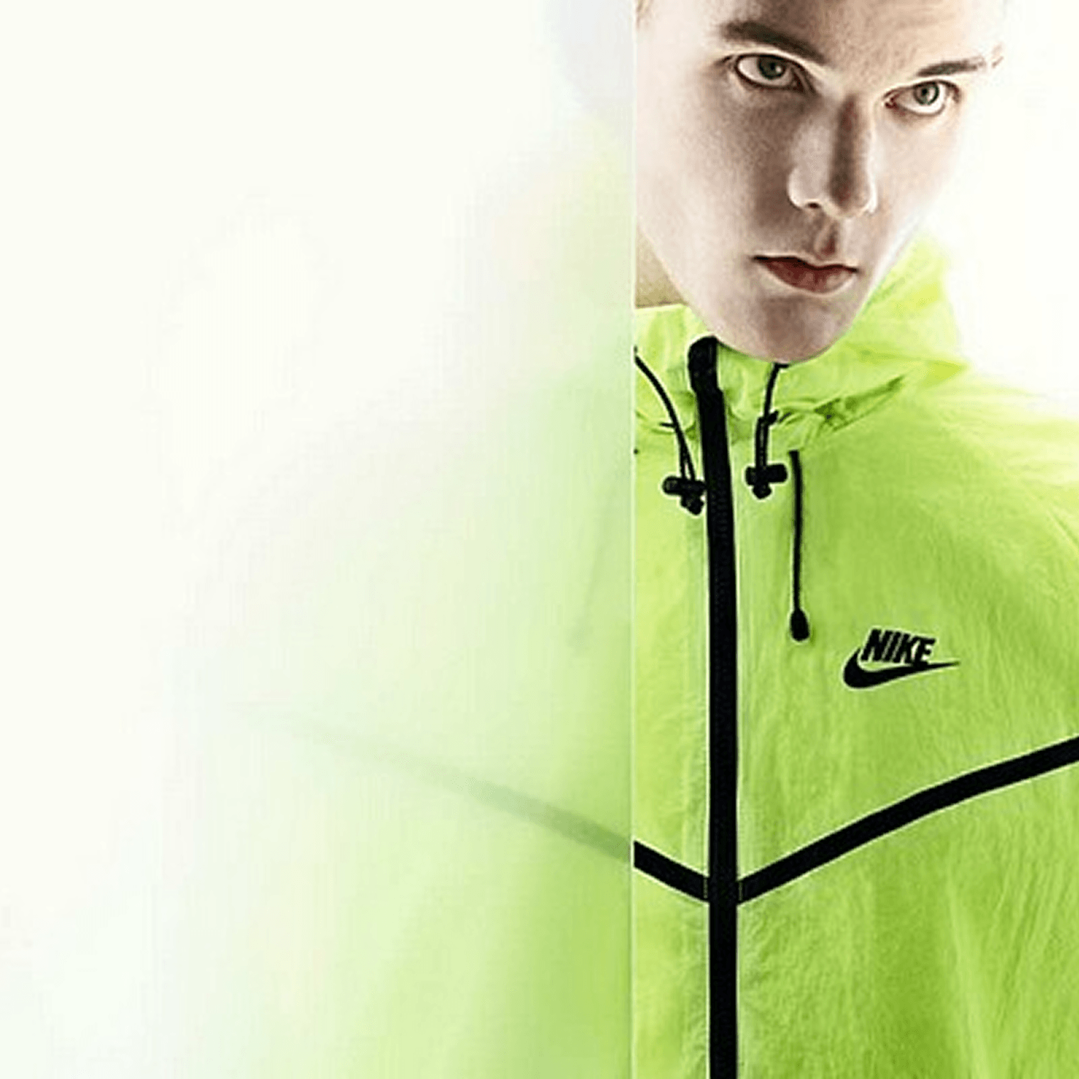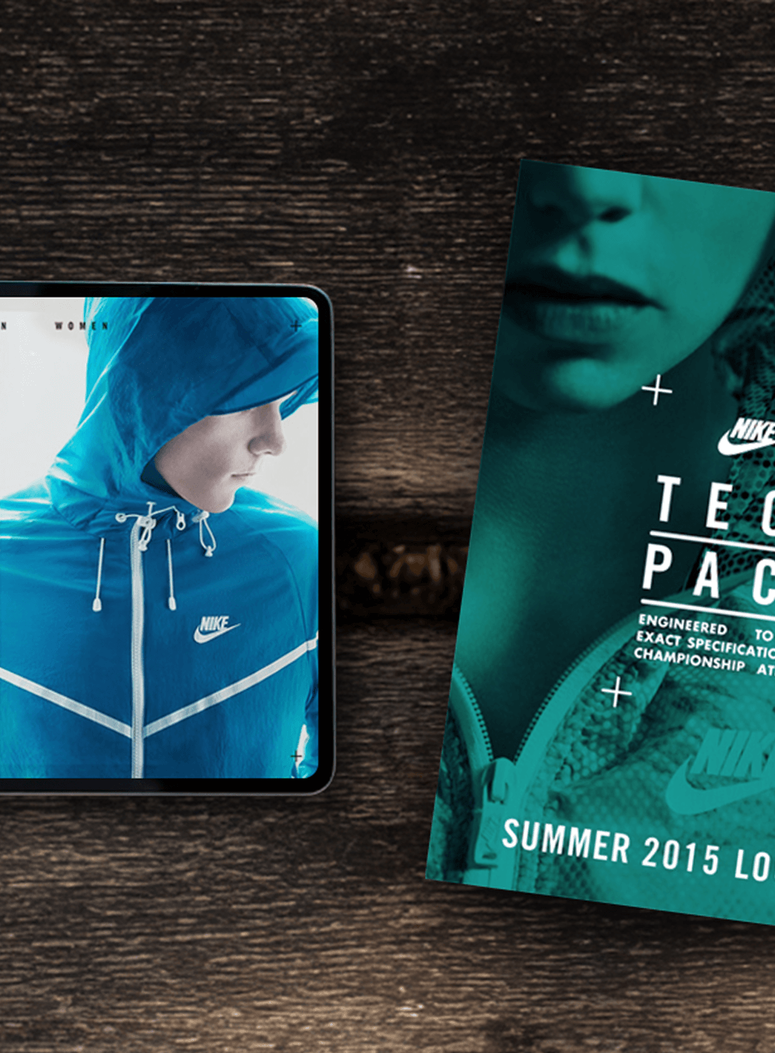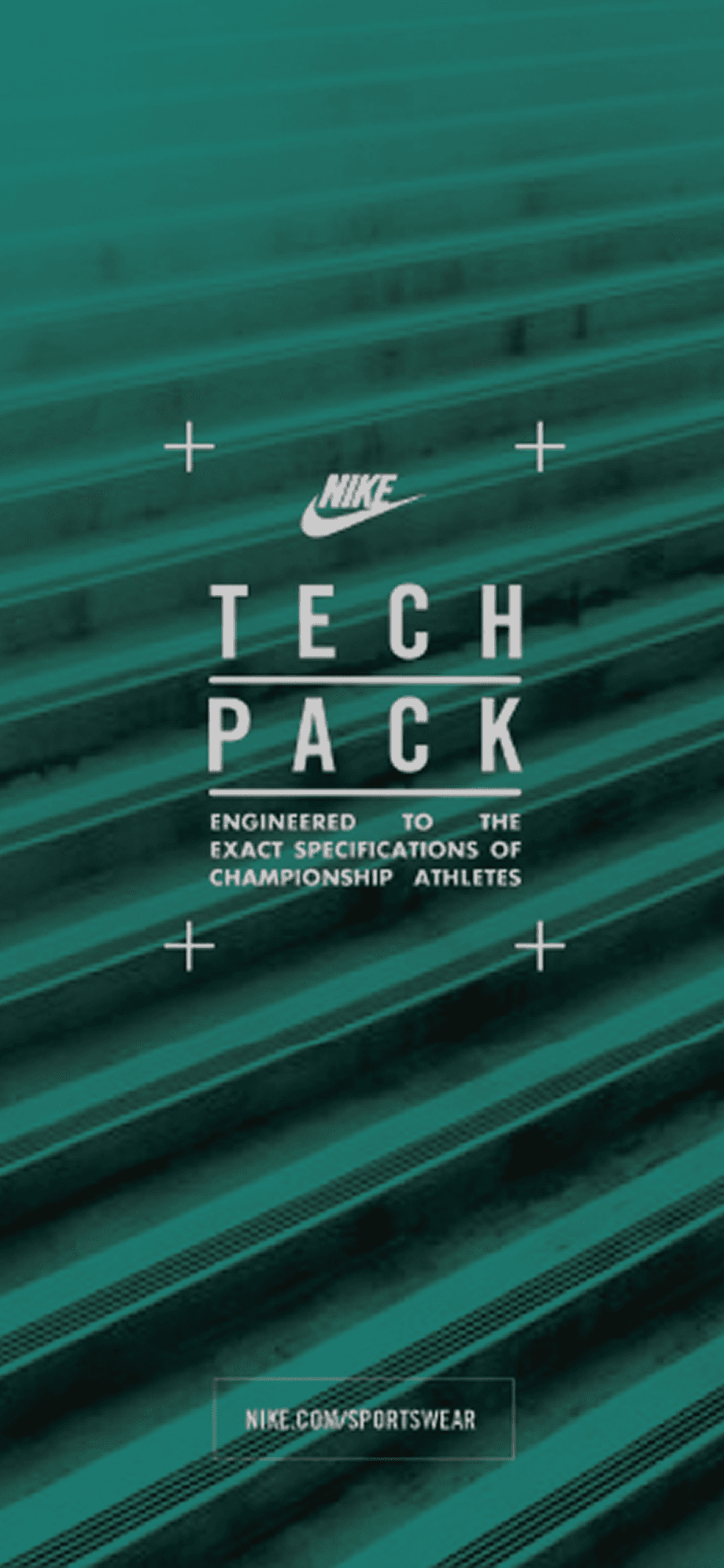 Photography featuring the Tech Pack line—worn by the world’s top athletes—used striking contrast and sharp focus to make every product stand out with unmistakable, aspirational energy.