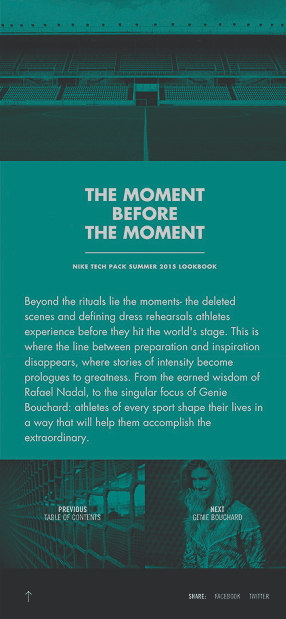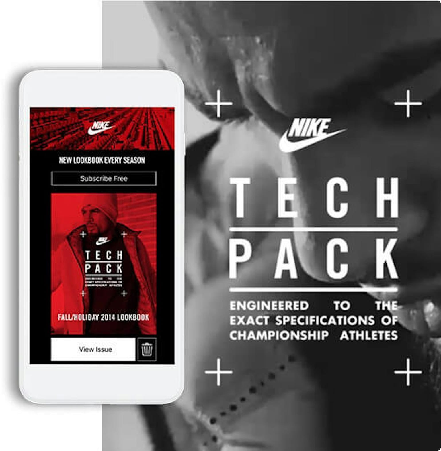 The digital lookbook puts product details and athlete stories side by side, built for instant exploration. Browse by tap, swipe, or table of contents—everything’s cross-connected so you can see the full Tech Pack story in motion. Integrated video brings it to life, shoppable features make buying seamless, and the platform’s built to evolve with every new drop.